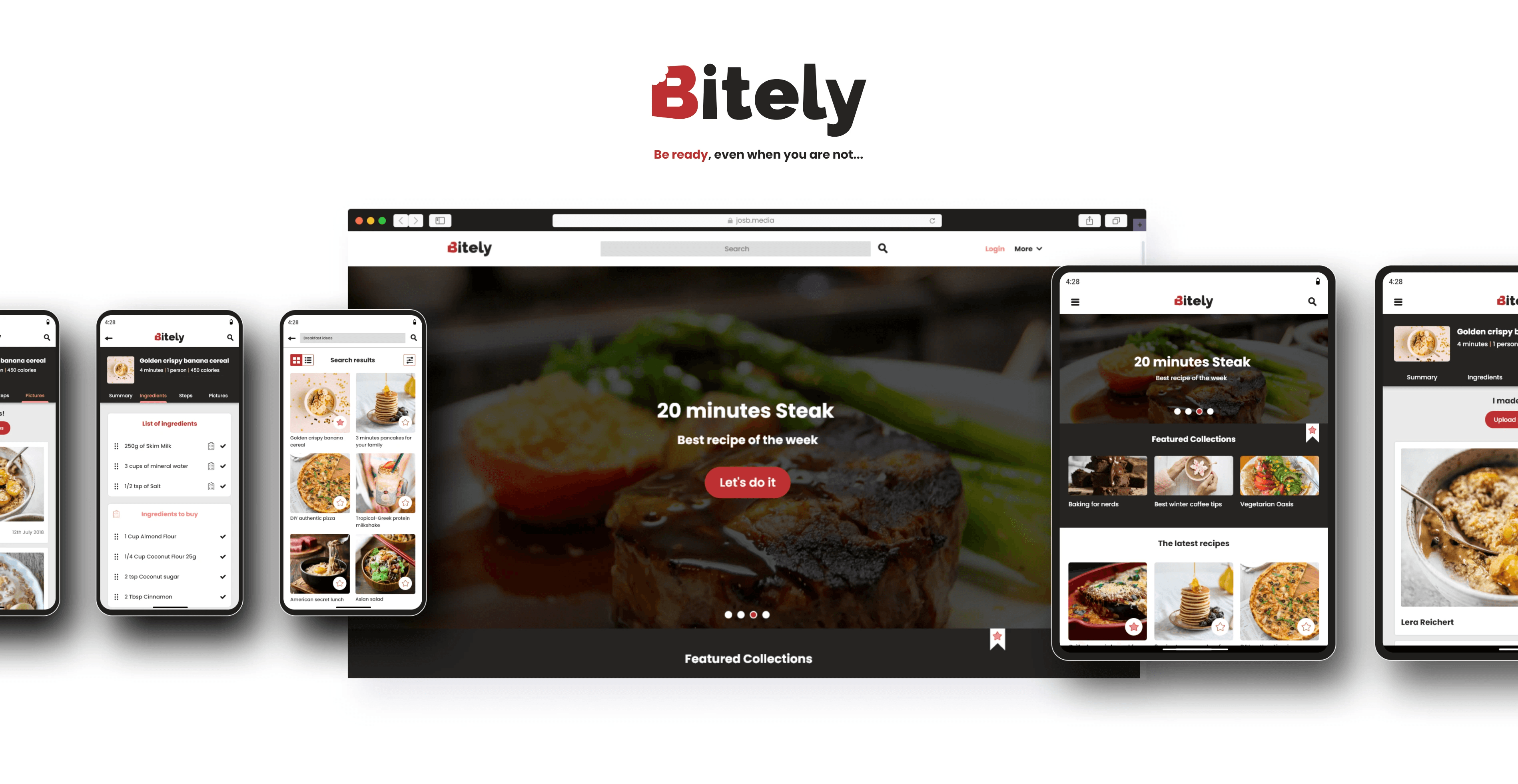Bitely is a modern, user-friendly recipe app designed to work seamlessly across multiple devices. This project explores how thoughtful UX research and a mobile-first approach can enhance the cooking experience for users.
