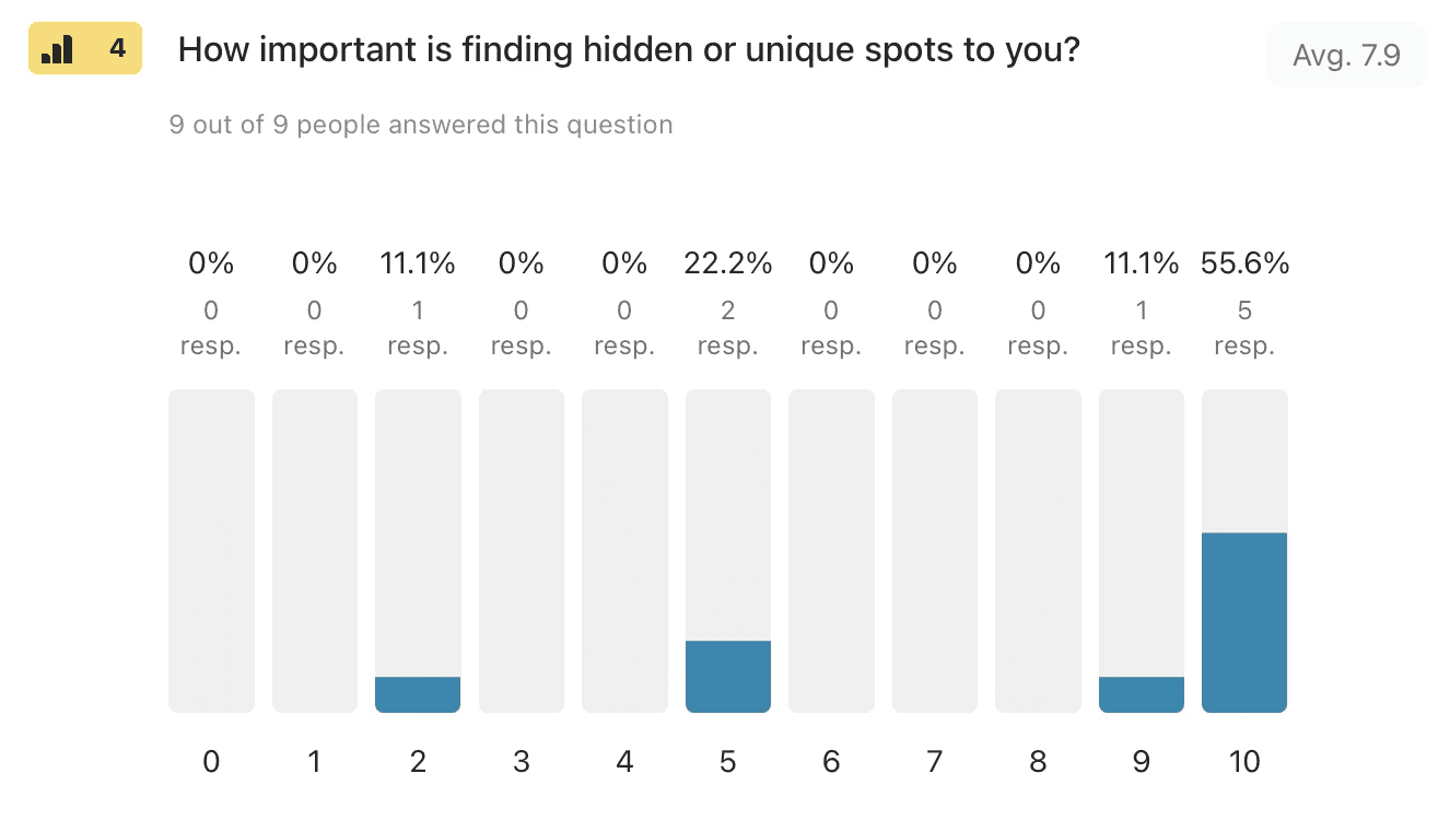 4. How important is finding hidden or unique spots to you? (Scale 1-10) - I wanted to see if people cared about discovering lesser-known places.