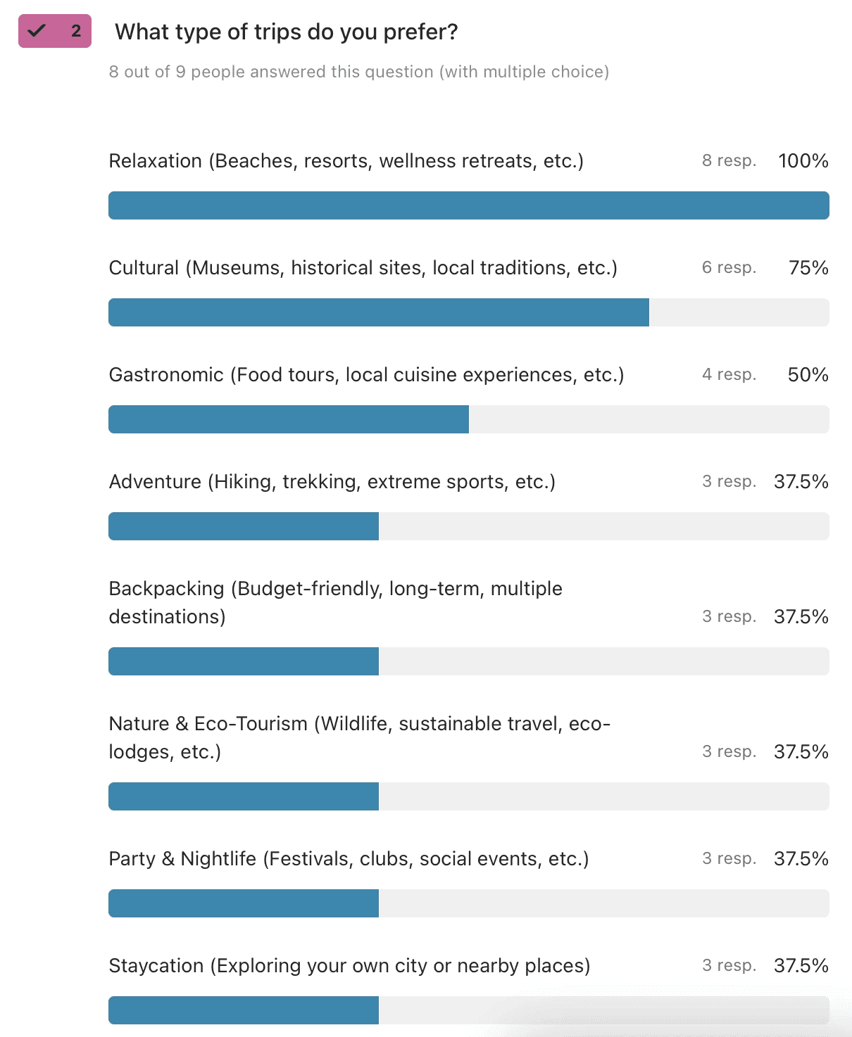 2. What type of trips do you prefer? - I gave people multiple choices, like: