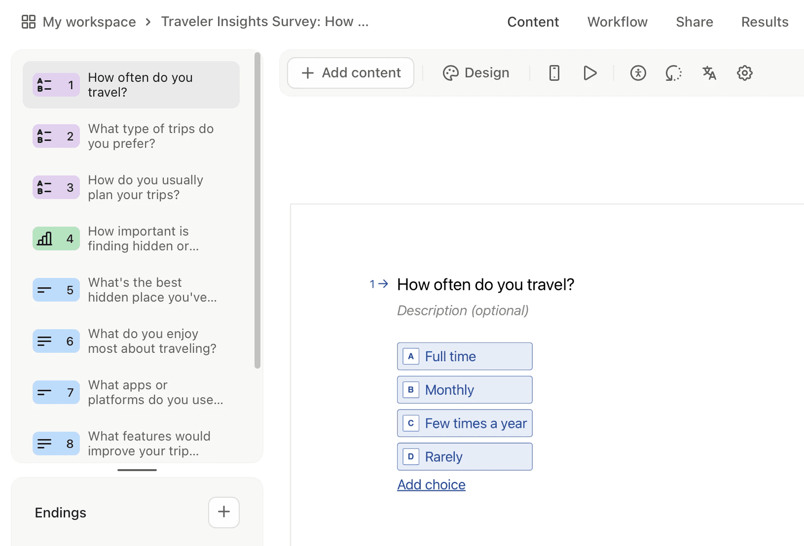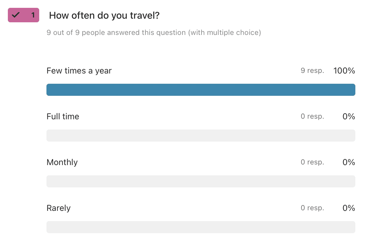 1. How often do you travel? - This helped me understand how engaged my audience is with travel.