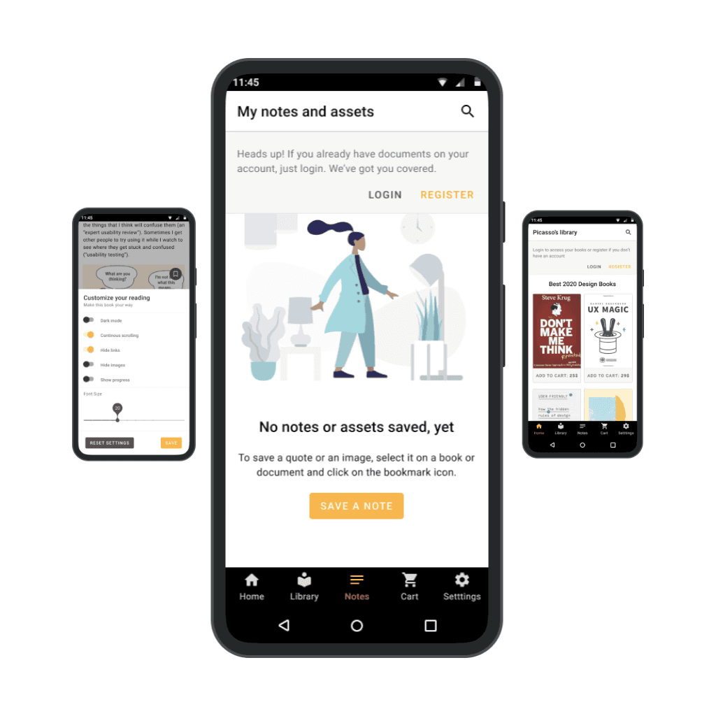 The internet is filled with amazing e-books for designers and artists. However, reading and organizing design-related content can be challenging. Traditional e-reading apps, such as Kindle, do not offer specialized tools for designers who need to take notes, extract assets, and reference visuals in their work.